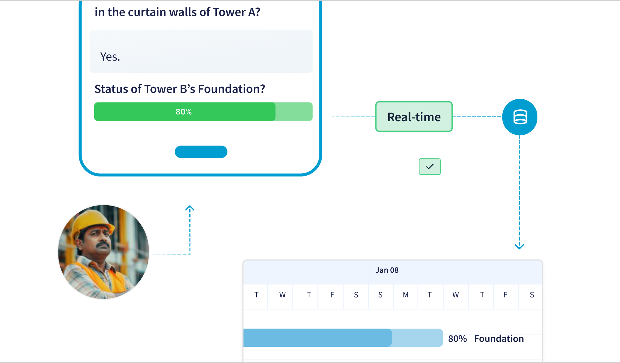 Site teams can log progress directly from mobile devices, ensuring that master schedules reflect ground realities without the delay of email threads or manual syncing.